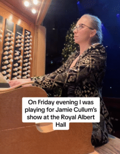 Jamie, known for his spontaneity and love of live improvisation, leaned over between songs and asked Anna to “create a little quiet organ moment.” No sheet music. No preparation. Just her, the legendary Royal Albert Hall organ, and a sold-out crowd waiting in hushed anticipation.