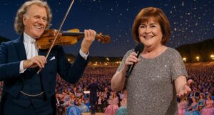 André, ever the master of musical emotion, guided his orchestra with a delicate hand, his violin weaving a tender counter-melody beneath Susan’s voice. But it was more than just music—it was the merging of two extraordinary journeys: André, who brought classical music to the masses with waltzes and warmth, and Susan, the woman who stunned the world with her raw, untamed voice on Britain’s Got Talent and captured the hearts of a global audience.