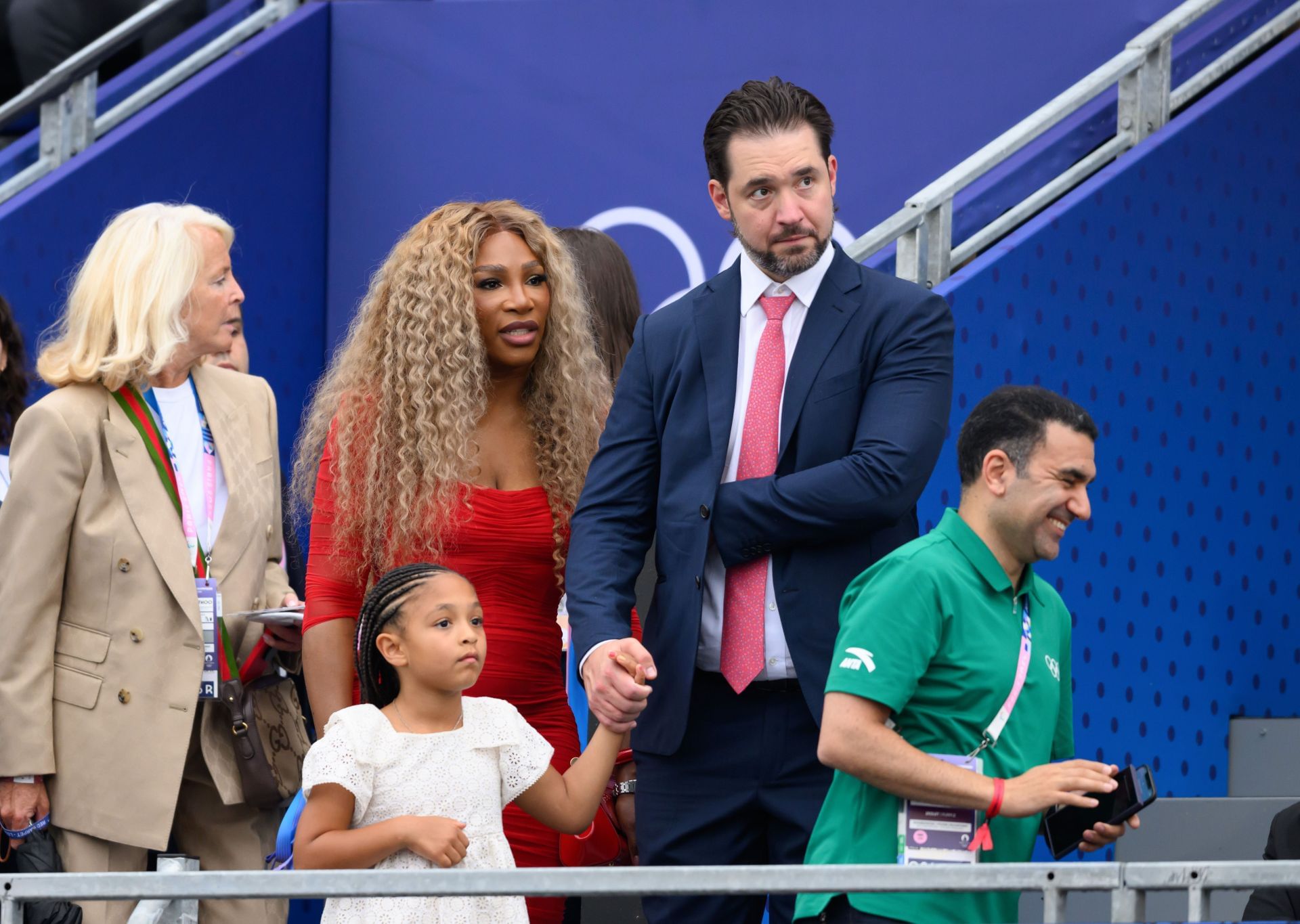 Serena Williams, Alexis Ohanian and Olympia at the Paris Olympics 2024. (Photo: Getty)