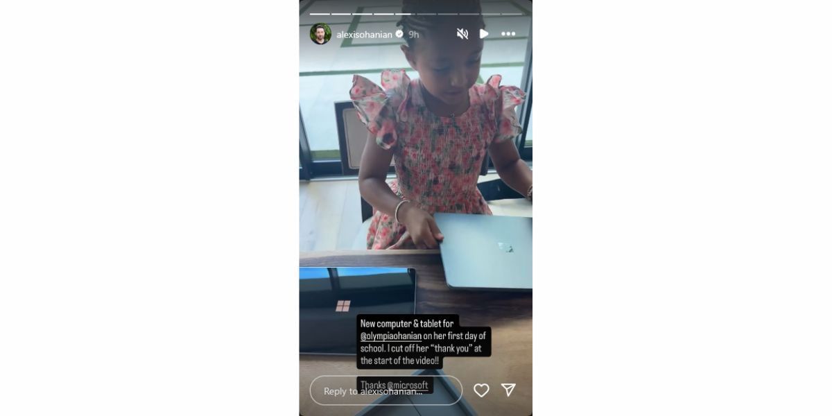 “New computer & tablet for @olympiaohanian on her first day of school. I cut off her “thank you” at the start of the video!! Thanks @microsoft,” Ohanian said on Instagram.
