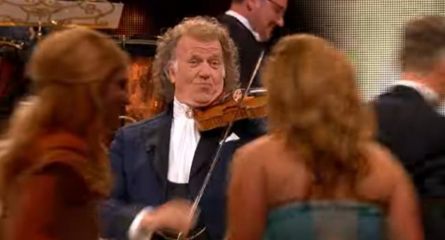 The performance opens with Rieu taking center stage, his iconic violin in hand, as the Johann Strauss Orchestra bursts into the vibrant, march-like melody.