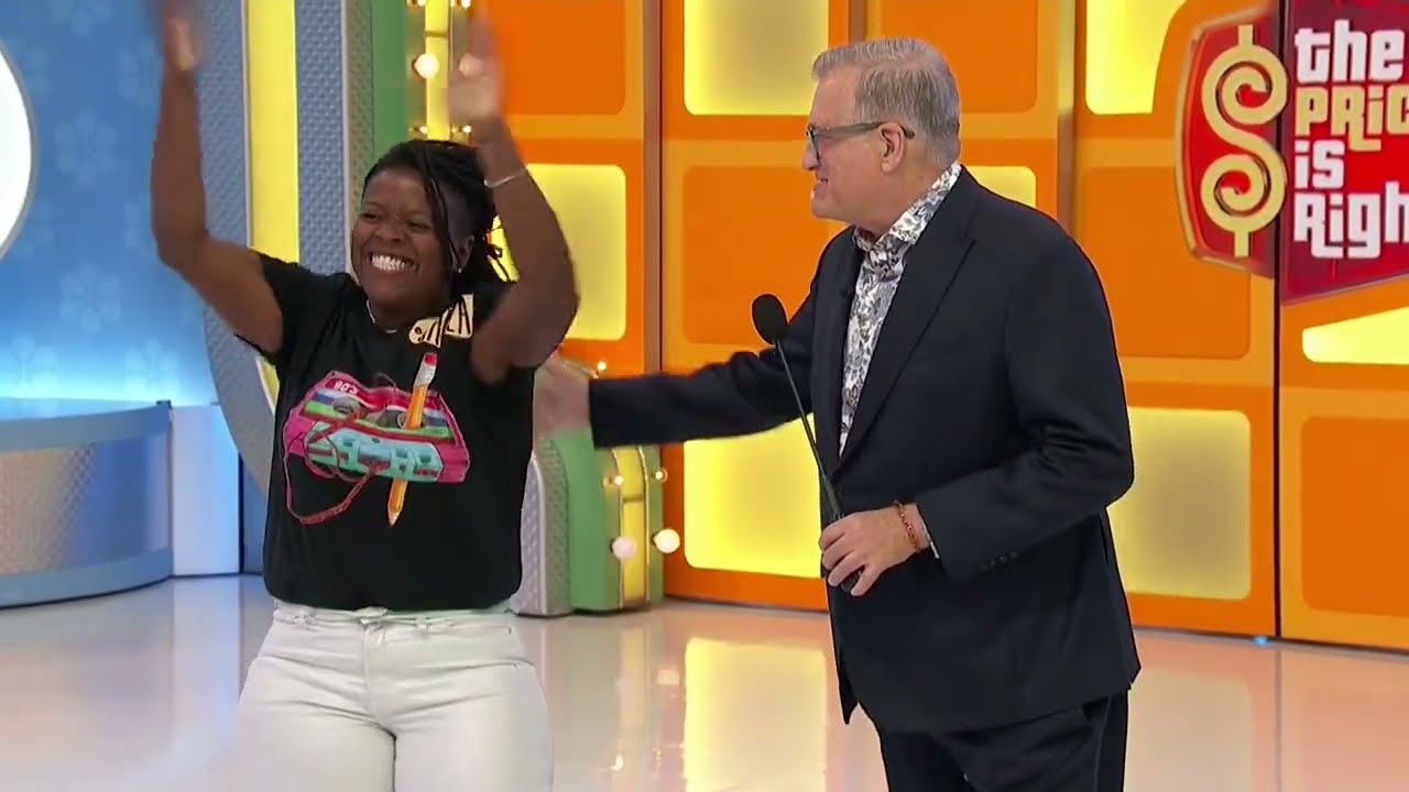 The Price Is Right contestant had a wild celebration after winning $10,000, which included hip-bumping into host Drew Carey. She danced off the stage and had a lot of energy during her game.