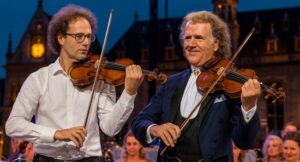 Amid the enchanting and fairy-tale-like atmosphere of Andre Rieu’s open-air concert in Maastricht, the most unforgettable moment didn’t come from the grandeur of the orchestra—but from an intimate, deeply emotional surprise. Andre Rieu, famously known as the “King of Waltz,” invited his son, Marc Rieu, to join him on stage for a special dedication to the woman who has quietly stood by his side through every triumph: his beloved wife, Marjorie Rieu.