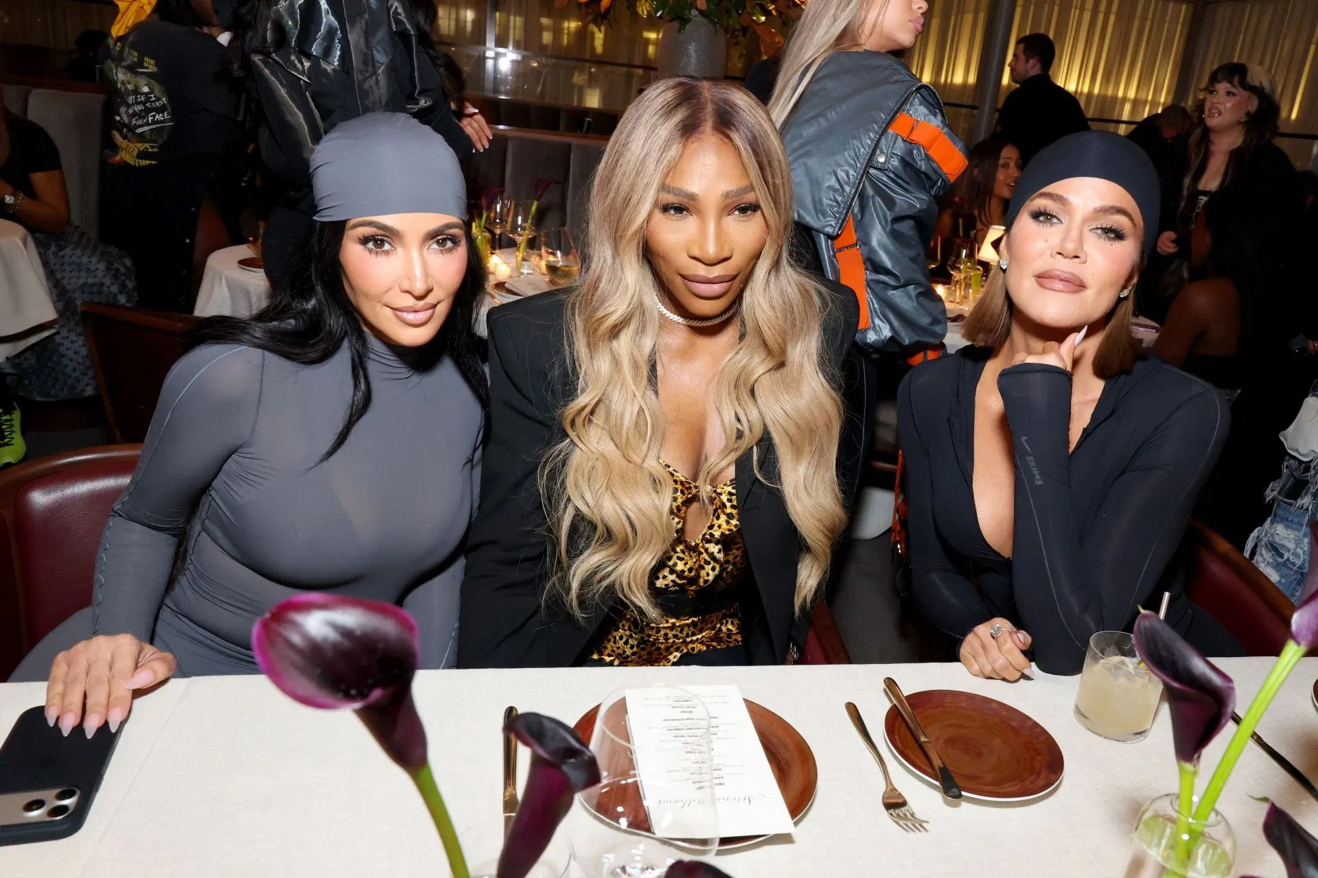 (L-R) Kim Kardashian, Serena Williams and Khloé Kardashian attend the NikeSKIMS Launch Dinner at Four Twenty Five on September 24, 2025 in New York City. (Photo by Kevin Mazur/Getty Images for SKIMS) – Source: Getty