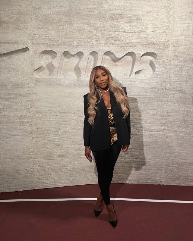 At the event, Serena Williams met with her longtime friend Kim Kardashian, who is the founder of SKIMS. Kardashian wore a blueberry-gray athleisure look that played like a catsuit at the launch dinner. Even Khloe Kardashian was present at the event as the three of them posed together.