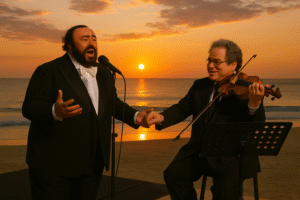 When two titans of classical music—Luciano Pavarotti and Itzhak Perlman—joined forces in Puccini’s Tosca, the opera world stood still. What unfolded on that enchanted evening wasn’t merely a performance—it was a once-in-a-lifetime masterclass in musical storytelling. The legendary tenor and the virtuoso violinist wove a vivid tapestry of love, longing, and loss, turning the opera house into a cathedral of emotion.