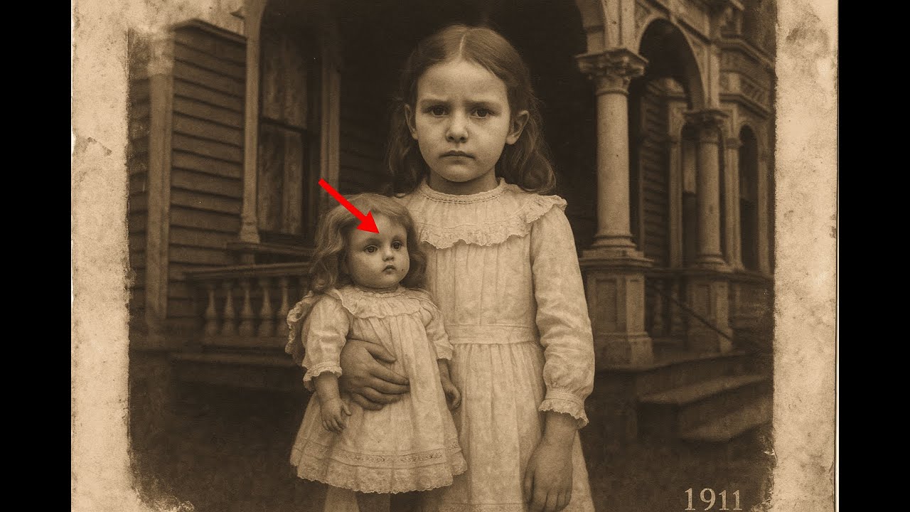 Little girl holding a doll in 1911 — 112 years later, historians zoom in on the photo and freeze…