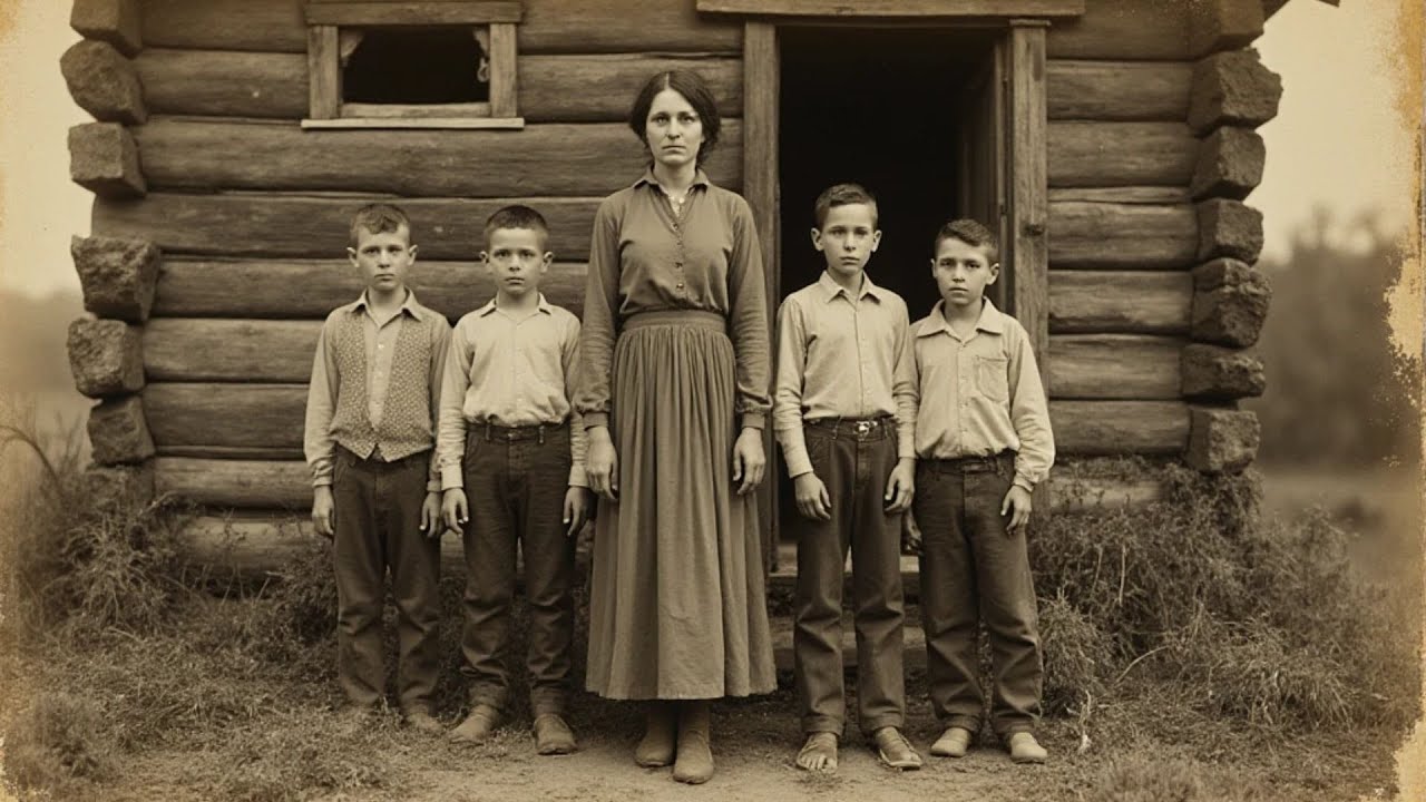 People said she took her husband’s death like scripture. Quiet, faithful, unshaken. But something in her eyes changed after the burial. The neighbors who brought her food said she wouldn’t let them pass the porch. She stood in the doorway with her hands folded, thanking them in a voice so soft they could barely hear it. And behind her in the cabin, they could see her sons sitting perfectly still at the table, all five of them, watching her, waiting.