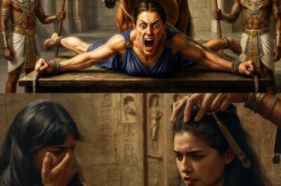 The bull’s head lowers slightly. The crowd leans forward. This is the moment they will talk about later. Did she scream? Did she stay silent? Did she beg? These questions matter more to them than what actually happens. The handlers keep the bull just close enough. Helena can feel its breath on her back. She screams. The sound cuts through the arena for a moment. Then it is swallowed by the roar of the crowd. The bull does not touch her. It never will. That was never the plan. Minutes pass. They feel like hours. Helena’s muscles shake from tension. She tries to brace herself for impact. That never comes. The chains dig deeper. Her knees ache. Her throat burns. Above her. In the shaded seats, men watch carefully. Not for the bull. For her. They are looking for the exact moment her posture changes. The moment her back curves differently. The moment her head drops in a way that says clearly that something inside her has broken.