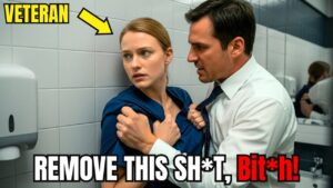 “Someone who’s seen men like you on battlefields and buried them there.” For a long moment, he said nothing, just wheezed, trembling. She released him, straightened her uniform, and stepped back. “Next time you think about cornering a woman,” she said softly. “Remember the sound of your ribs breaking?” He slid to the floor, clutching his side as she opened the door.