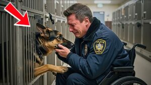 Michael wheeled himself closer until he was eye level with the dog. His chest ached as memories flooded back: nights patrolling dark streets, moments of wordless companionship, the sound of paws pounding beside him in pursuit. He reached a trembling hand through the bars.