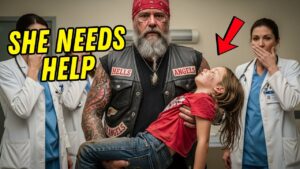 Even without the vest, everything about him screamed danger. But in his arms, held with unexpected gentleness, was a little girl who looked like she’d been through hell. The nurse found her voice first. Sir, I will need you to She needs a doctor now. Jack’s voice cut through the silence, not loud, but carrying absolute authority.