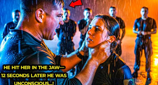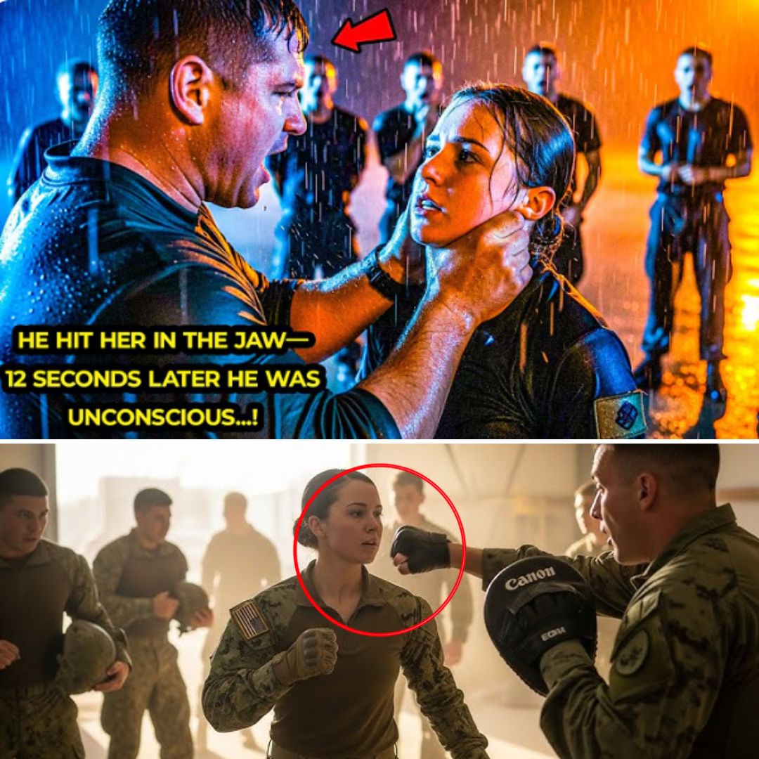 Lieutenant Bradley Harwick’s words came out like poison before his fist did. The impact cracked against Petty Officer First Class Raven Calderas’s jaw, snapping her head sideways in the middle of the close-quarters combat bay.