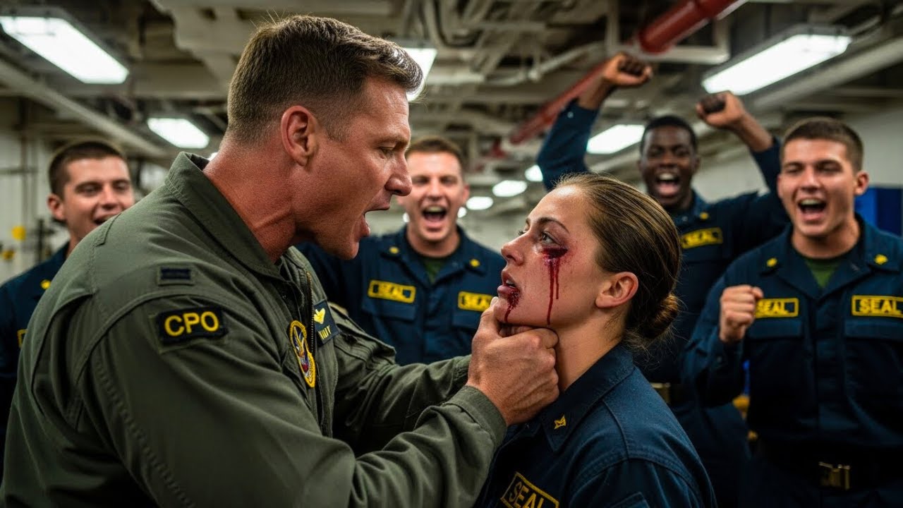 Mark simply lifted a hand, and his voice stopped Tyler cold in his tracks. You take one more step, Mark said quietly, and you’ll be on the floor next. Tyler froze. The room was dead silent. Master Chief Holden approached, but he didn’t interfere. He respected Lawson too much. Lawson knelt beside Emily, gently, checking her pulse in the back of her head.