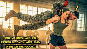 Hawthorne felt the familiar calm descending as she walked onto the mat. It was the same feeling she’d had in that building in Raqqa when her M4 had clicked empty, and she’d known that survival meant becoming something primitive. The laughter didn’t matter. The size difference didn’t matter. What mattered was that these Marines thought combat was a game with rules.