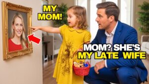 She walked closer and called out, “Mister.” He looked up, surprised to see her. For a second, he didn’t say anything, just stared at her. Then he stood up and gave a small, nervous smile. “You came back,” he said. “Come in, please.” But Lily didn’t waste time looking around this time. She walked straight to the picture hanging on the wall. She stood in front of it and pointed again. “That’s my mom.