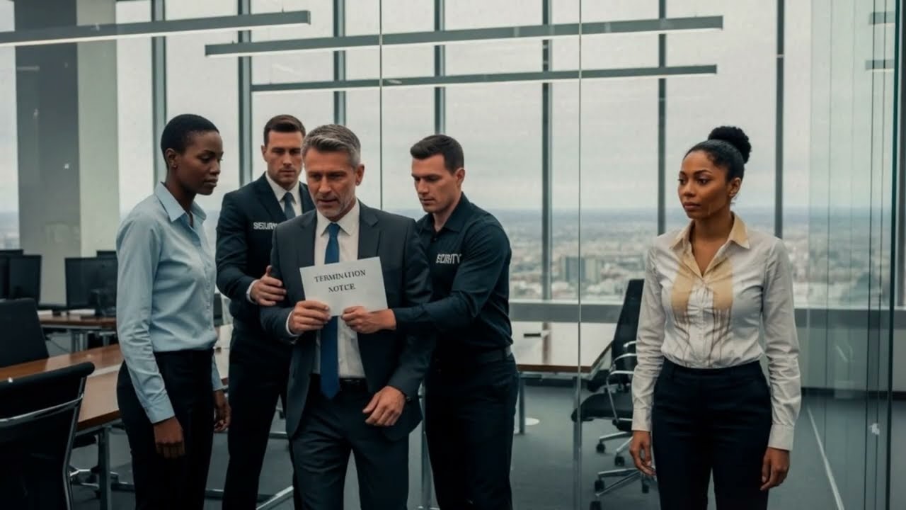 At that moment, the door burst open. Two security guards, followed by the human resources director and a legal representative, entered.
