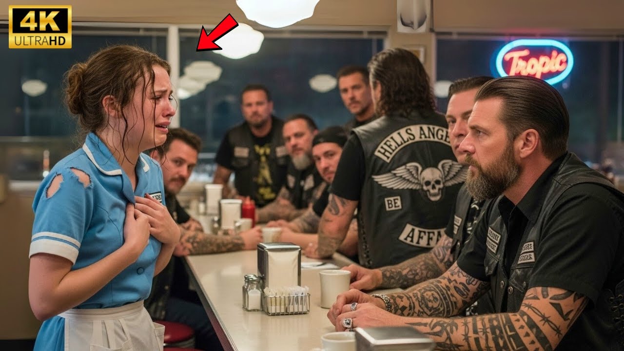 On this night, the neon buzzed faintly against the storm outside. The rain streaked the windows in crooked lines. Maya leaned on the counter, tying back her hair, trying to shake the weight of another endless evening. What she didn’t know was that in the far corner sat a group of hell’s angels quietly eating, laughing softly among themselves.