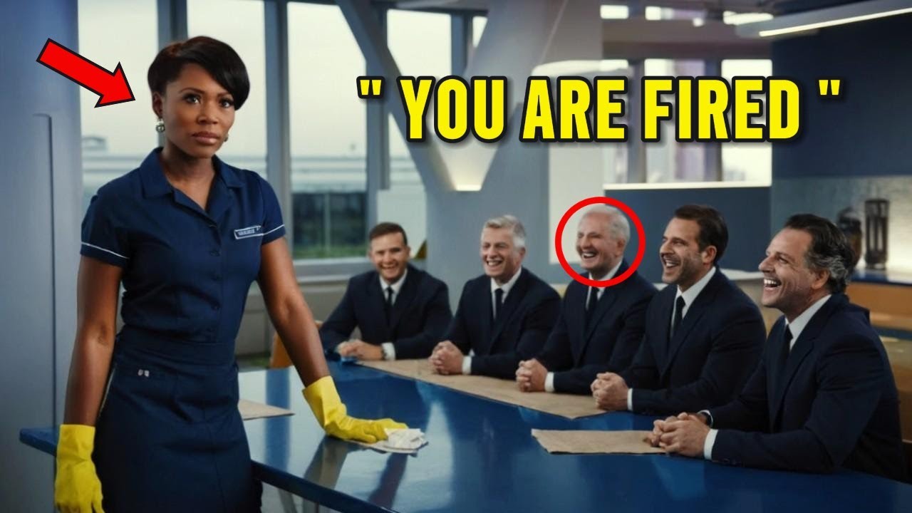 Evelyn didn’t Flinch. Instead she stepped forward, pulling a folder from her cart and placing it on the table. The logo of Hawthorne and Beck was blazoned on the front, along with the words shareholders report. The room fell silent. Allan’s smirk faltered as EVN began to speak. “For years I’ve watched this company thrive on the backs of people you refuse to see,” she said, her voice unwavering. “I’ve watched employees mistreated, ethical lines crossed, and profits prioritized over humanity, and I’ve stayed quiet until now.” Murmurs erupted around the table, one of the board members leaned forward squinting at the folder. “What is this?” “This,” Evelyn said, opening the folder, “is proof, proof of the unethical practices, the mismanagement and the outright disregard for the people who make this company run.” Allan’s voice boomed across the room. “Who do you think you are coming in here and making accusations? You’re a clean lady.” Evelyn met his glare with a calmness That Shook the room. “No Mr Greaves, I’m the majority shareholder of Hawthorne and Beck and today I’m firing you.”