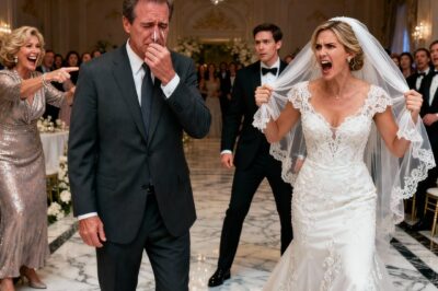 In the middle of the lavish wedding, the groom’s mother pointed at me and burst out laughing. “Look at him! A pitiful man who can’t even afford a proper dowry gift!” The groom only smirked, silent but agreeing. My throat tightened, my eyes stung—but before I could speak, my daughter tore off her wedding veil. Her voice trembled, yet it was firm. “I’m done. I’m not marrying into this family. Dad… let’s go home.” The entire hall fell silent. The groom stood frozen, his face draining of color… then slowly turned to his mother, realizing in horror that he had just lost the most precious thing in his life because of her.