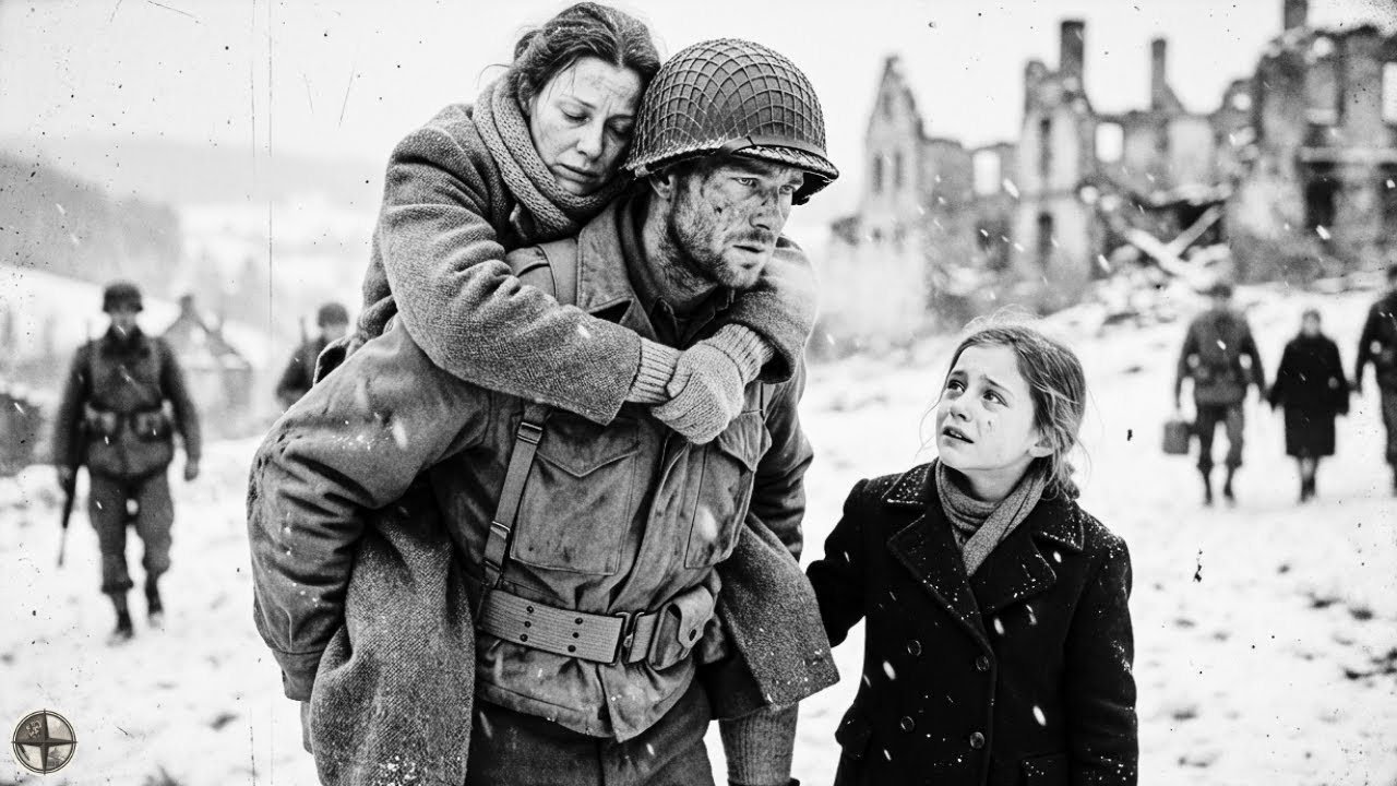 Instead, a young American soldier steps forward, kneels in the rain, lifts the German woman gently onto his back, and begins to carry her up the hill like she is someone precious. “Why are you carrying my mother?” the girl cries, her voice full of anger and secret hope. And in that moment, everything she’s been taught about monsters and mercy begins to crack.