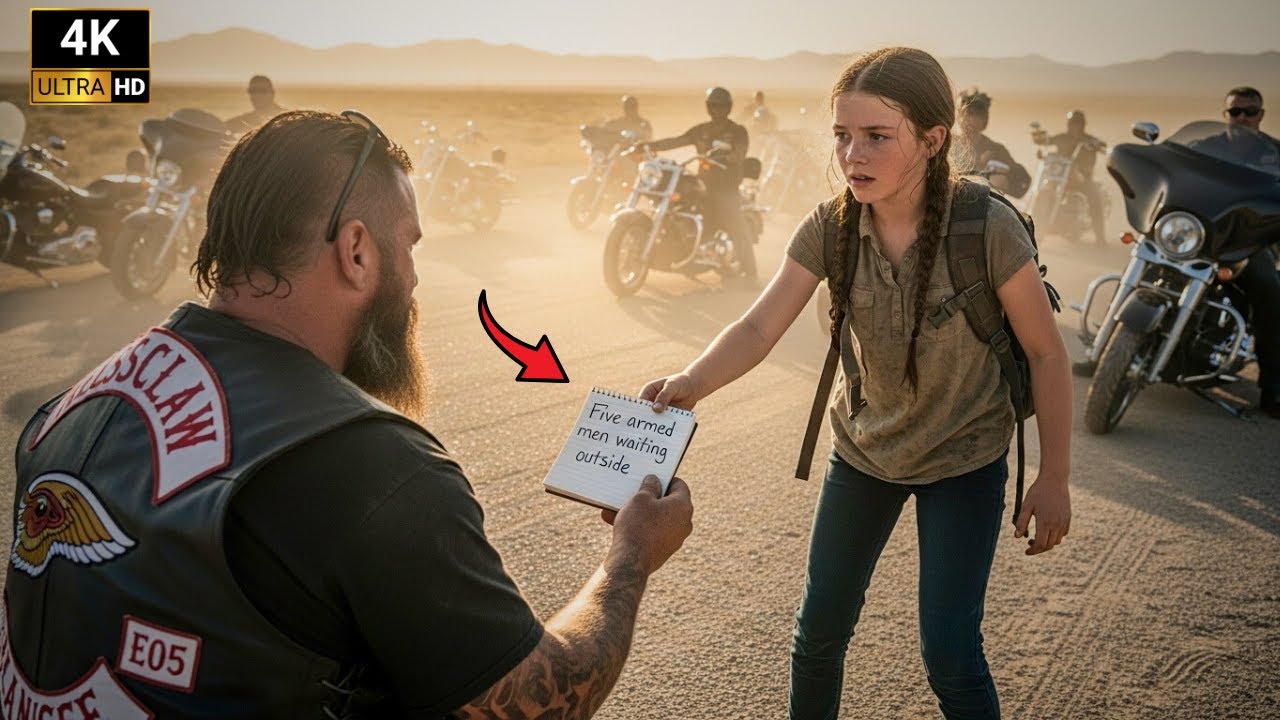 She ran with everything. She had legs burning, lungs tearing, fingers gripping a notepad that shook in her hands. When she reached the row of Harley engines and tapped the nearest biker’s arm, she wrote one frantic sentence that would summon 500 Hell’s Angels into her life forever.