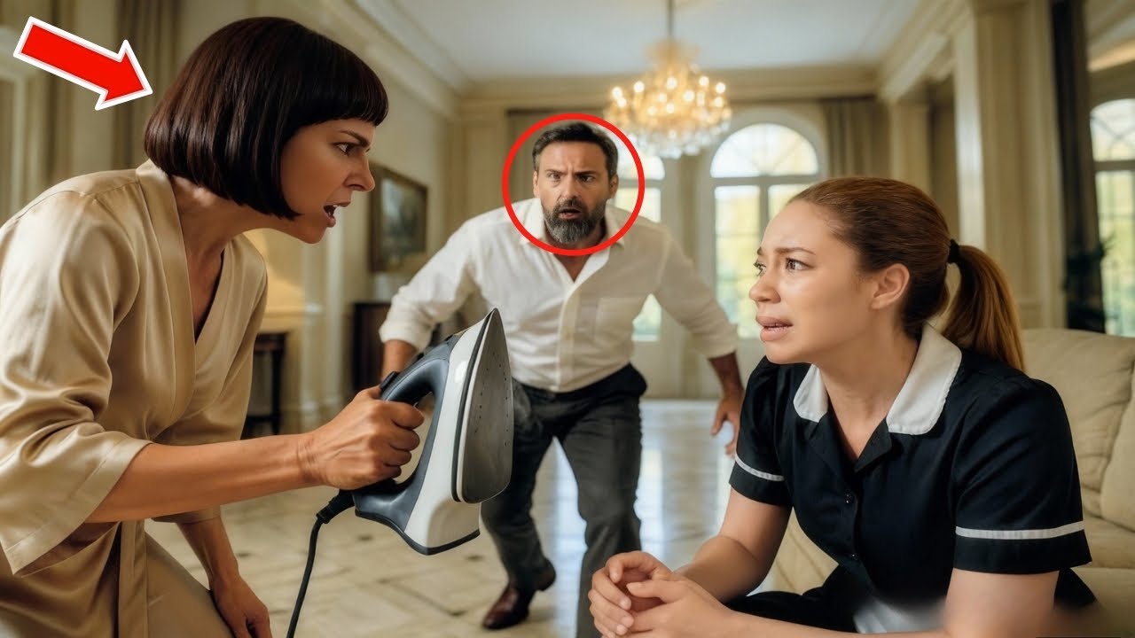 Thomas Brennan shoved open the laundry room door with such force that the wood slammed against the wall. What he saw in that moment froze his blood. His wife Victoria pressing the iron against the forearm of Emma, the young maid who could barely scream because Saabs choked her voice. “Do you think you can challenge me?” Victoria growled, teeth clenched.