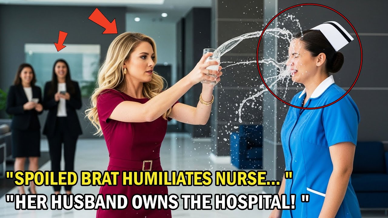 I watched her throw a glass of water in my face, laughing as it dripped down my nurse’s scrubs. She called me worthless, a nobody who’d never amount to anything. What she didn’t know, my husband owned the hospital and her father’s company. Her whole world was about to crumble. Before I tell you how this entitled brat learned the hardest lesson of her life, do me a favor.
