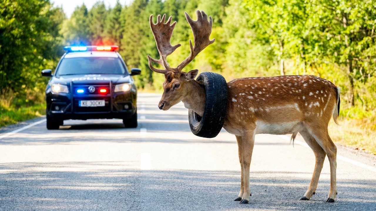 I tried to grab the edge of the tire with my hands and pull it up, hoping to slip it over its antlers, but the deer violently jerked its head back, and I fell onto the asphalt. It was completely clear—the antlers were too branched and wide for me to handle. I pulled out my phone, quickly found the number for the wildlife rescue organization, and called. The dispatcher on the other end heard me out and told me to stay with the deer; a veterinarian was on the way.