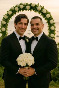 The truth emerged only when a single photo leaked: Muir standing under a canopy of white roses, wearing a classic black tuxedo, a soft smile on his face, and a tear glistening in his eye.
