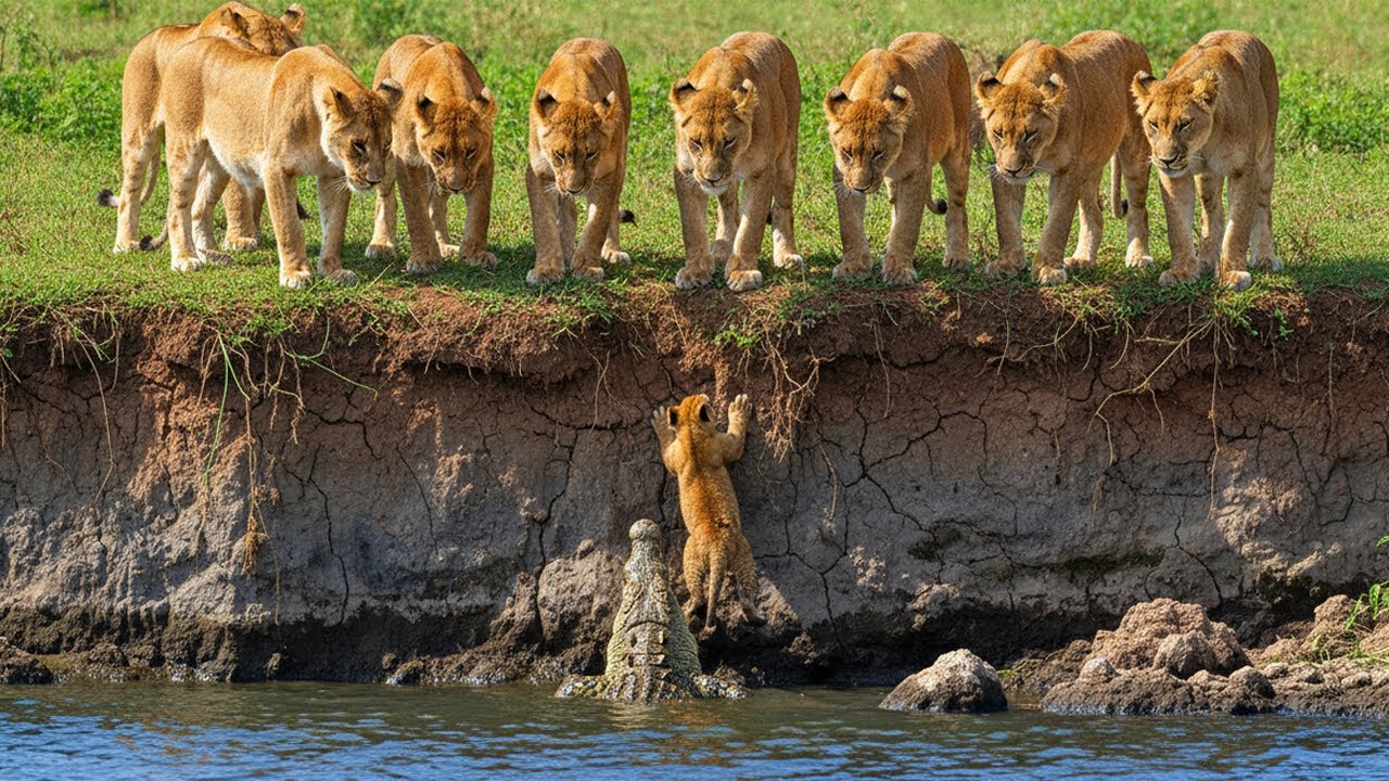 Tom was on its side. Leila let out a terrifying warning shriek, a sound filled with both fury and plea, but the crocodile responded only with deadly silence. The distance between Keo and the jaws shortened rapidly. The unequal battle for survival had begun, and all the lions could do was stand on the bank, watching their only cub face death from the depths below.