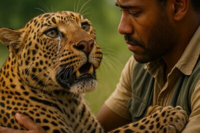 The 80 kilogram leopard stood three meters away golden eyes locked on the man kneeling in the African dirt six…