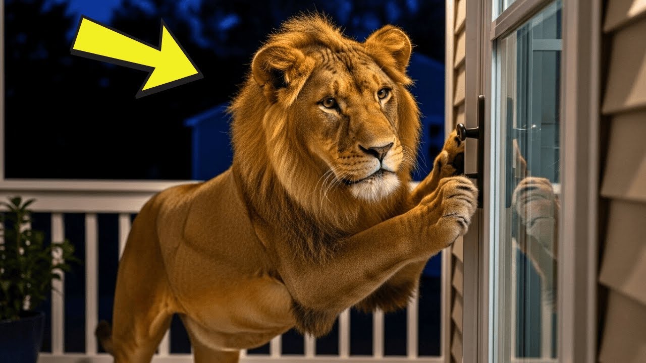 Daniel instinctively stepped in front of her, though he had no weapon, no plan, only a desperate instinct to protect. The lion didn’t growl. It didn’t paw at the door in aggression. Instead, it lifted one massive paw and tapped gently against the glass. once, twice, three times. The exact pattern they’d heard before, turning on the lights, Daniel whispered, “That that’s impossible.” Laura couldn’t speak.