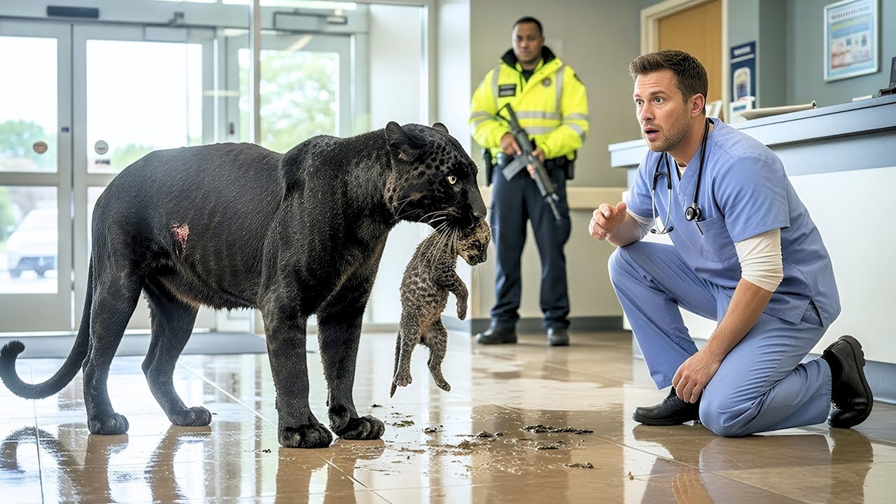 The automatic doors of the city general hospital slid open, shattering the morning calm into a million terrified pieces. Standing there, framed by the gray light of the street, was a creature of pure nightmare. A massive black panther, slick with mud, muscles coiling under midnight fur, its chest heaving violently. Screams erupted instantly.