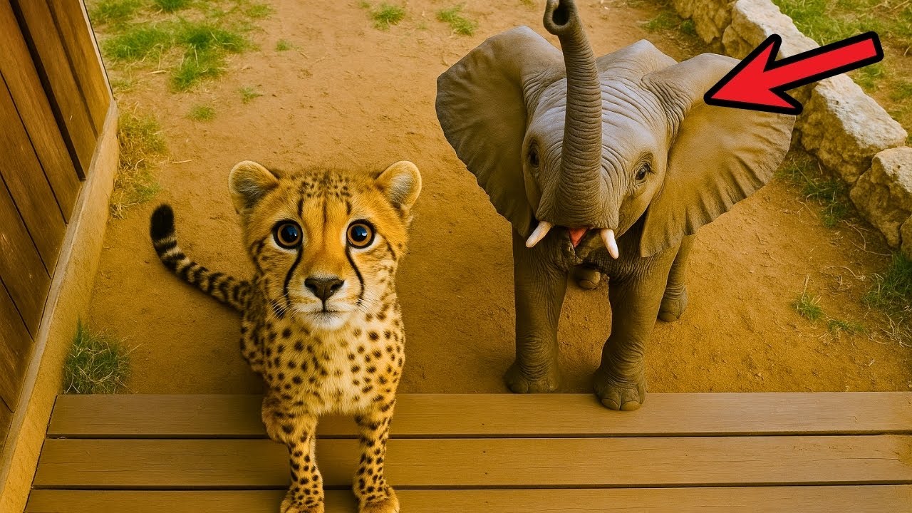 The morning sun had barely touched the horizon when James heard the familiar chirping sound outside his remote ranger station he smiled without looking up from his coffee knowing exactly who was announcing her arrival but when he finally stepped onto the wooden deck to greet his regular visitor his coffee mug slipped from his hand and shattered on the planks below behind Zahara the sleek cheetah he had saved three years ago stood a baby elephant looking confused exhausted and completely out of place the sight was so impossible so utterly contradictory