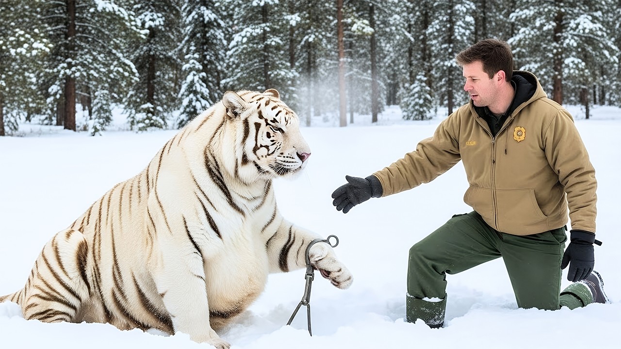 Oh my god, I’m not going to let you die here. Negative. Grounded. 40 minutes out. his voice cracking with urgency. Code red. I have a gravid white tight tiger caught in a snare. Significant blood loss. I need immediate extraction. The response was devastating. Crackling through the static, the blizzard had grounded all air support.