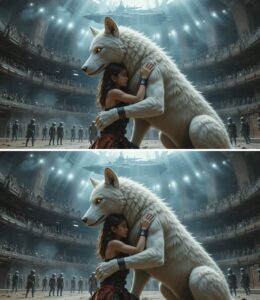 The albino wolf stood 12 ft tall at the shoulder, bred over generations by the creassi for one purpose: execution. Its eyes glowed red in the arena’s harsh lighting, saliva dripping from fangs as long as daggers. In 300 years, nothing had survived Snow Fang for more than 40 seconds. Lisa looked up at the massive predator.