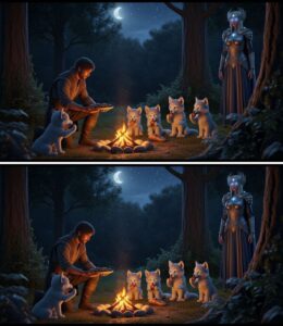 He froze, hand moving slowly toward the plasma cutter he kept for protection. Then they stepped into the fire light. They were children or something close to it. Humanoid certainly, but covered in fine silver gray fur that caught the fire light like starshine. Their ears were pointed and mobile, swiveling toward every sound. They couldn’t have been more than seven or eight in human years, and they were painfully thin.