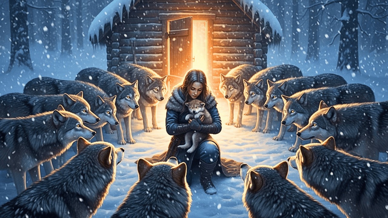 Snow blasted into the cabin like a living thing. And there, just beyond the pool of yellow light from her lantern eyes, dozens of them glowing amber and green in the darkness. Wolves, 20 of them, maybe more, huddled against each other in a desperate mass. Their fur was crusted with ice, their flanks heaving. The smallest ones were barely visible beneath the larger bodies, pressing close, trying to share warmth that was draining away with every passing second.