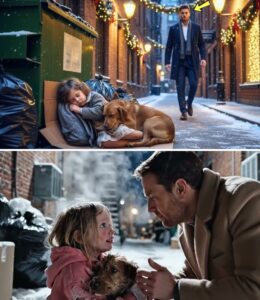 Please don’t take my dog. He’s all I have. I’m not here to take him. Single dad CEO found a little girl and her dog sleeping on trash on Christmas Eve. The truth left him stunned. Snow fell hard that Christmas Eve, covering New York’s cold streets in white silence. But in the alley behind an expensive restaurant beside piles of torn boxes and trash, a little girl was asleep, curled up on the frozen ground, clutching a shivering brown dog to her chest.