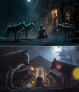 On the morning of the fourth day, when Elena woke from a brief and restless sleep, she found not a wounded wolf beside the hearth, but a man. She gasped in surprise, instinctively reaching for the knife she always kept close. But then she recognized the same bandaged wounds, the same labored breathing.