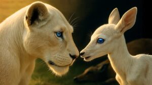 nature did not work this way but as Nala looked down at the small white head tucked against her white fur she felt something click into place a puzzle piece fitting into a space that had been empty for too long the fawn’s blue eyes when they occasionally looked up at her reflected the same pain of rejection the same Mark of difference that had defined Nala’s entire existence perhaps it was the albinism that created a bridge where none should exist perhaps it was the hormones still flooding her system