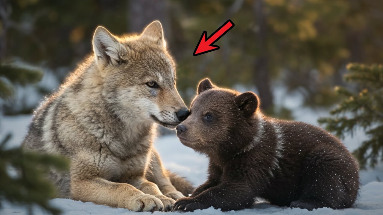 The cub appeared severely injured, one hind leg twisted at an unnatural angle, and its breathing was visible but labored. “How long has he been like this?” Sarah asked, her voice barely above a whisper. Since dawn, I have been watching for 3 hours. The wolf found the bear cub trapped under fallen ice from last night’s storm. Instead of seeing an easy meal or potential threat, Kodiak has been keeping the cub warm, occasionally licking its wounds, and has not left its side even once.