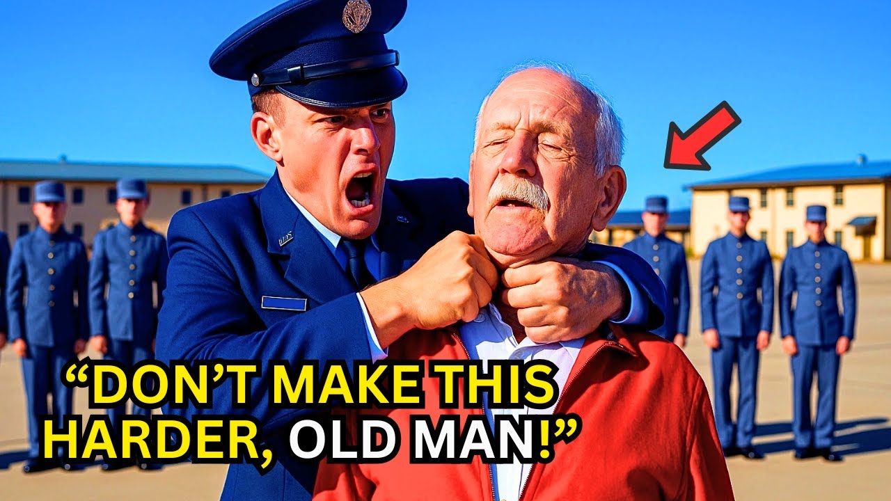 The captain’s eyes widened in dawning horror. A legend was not just visiting their base. He was in their custody. Back at Heritage Park, Airman Davis was riding a wave of adrenaline and misplaced authority. He had successfully secured one of Patrick’s wrists in a steel cuff. The old man hadn’t fought back, but the act of cuffing him felt like a victory to Davis.