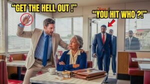Move, you worthless trash. Gregory Harlo’s hand struck Evelyn Brookke’s face. Her coffee cup toppled, shattering on the floor. The diner went silent. Phones came out immediately. Evelyn touched her cheek, but didn’t flinch. Her steady gaze unsettled Harlo. He straightened his tie, convinced he’d restored order, but he had no idea what he just set in motion.