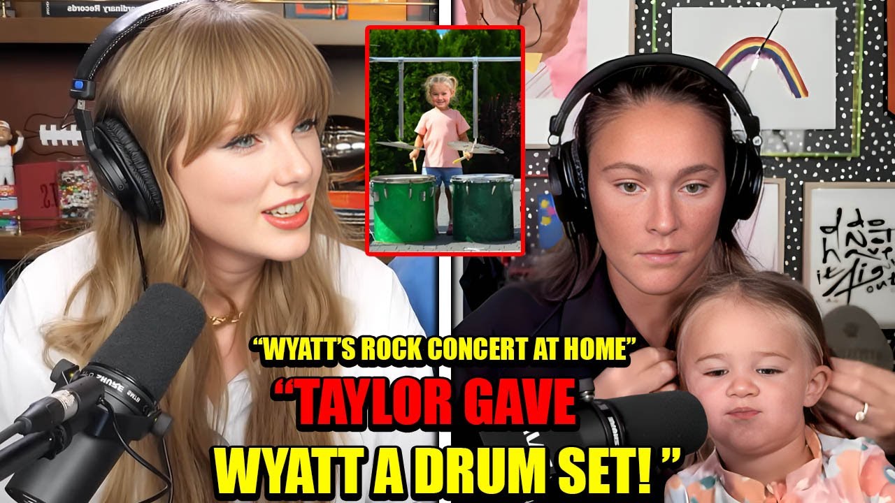 The first drumbeat was innocent enough—a curious tap, a small child’s experiment with rhythm. Then came the roll: a squeal of delight, two tiny sticks flying, and a speaker with exactly one setting—on. Within minutes, the Kelce living room sounded less like a quiet family space and more like the opening night of a rock tour. The gift-giver, everyone would later agree with a grin, had great taste and terrible timing. The gift was from Auntie Taylor—Taylor Swift—and it was only the beginning.